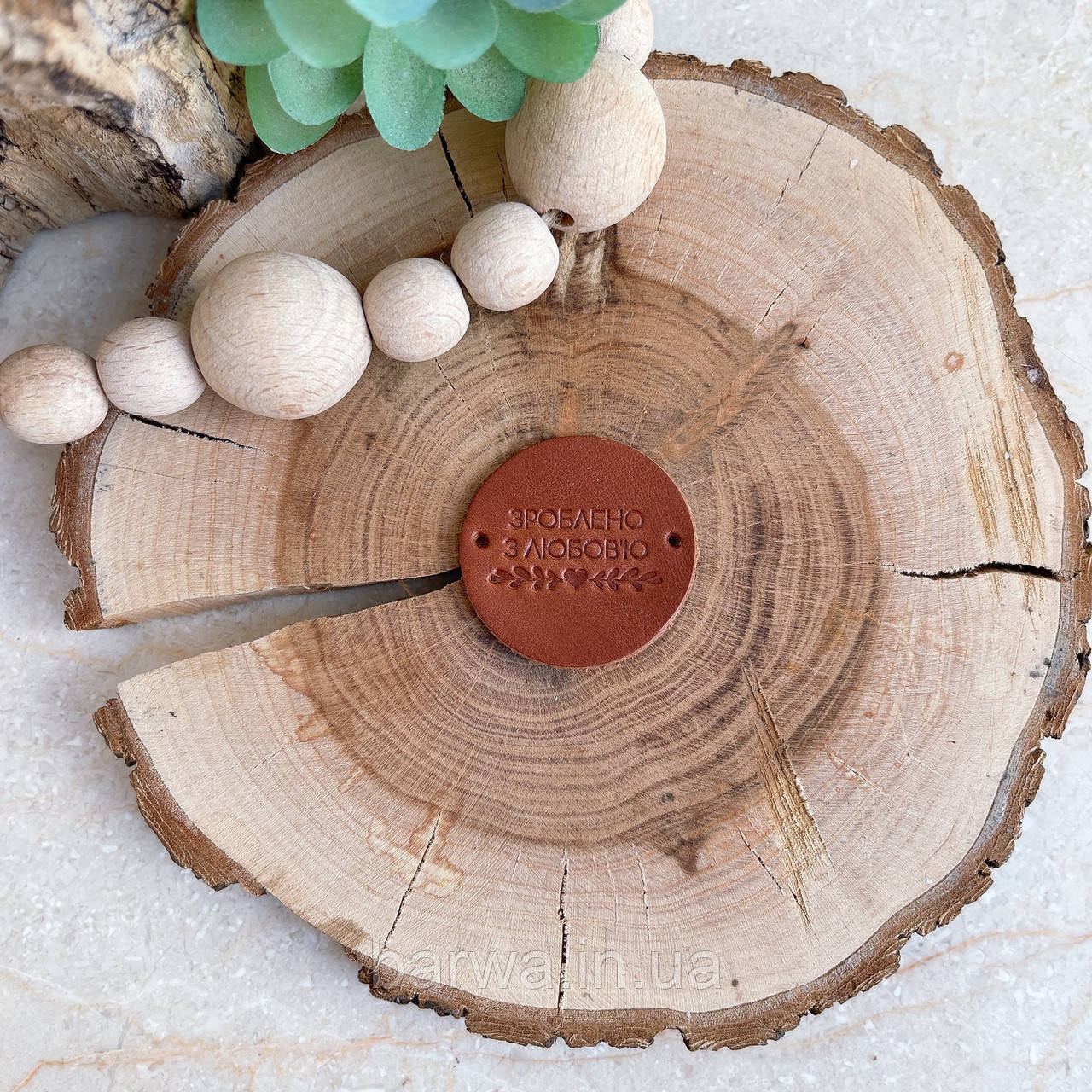 Шкіряна бірка пришивна ЗРОБЛЕНО З ЛЮБОВ‘Ю 3,5 см