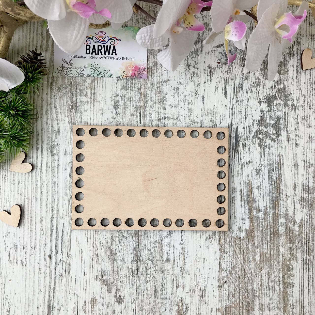 Дно виготовлене зі світлої фанери завтовшки 4 мм. Має отвори для обв'язування діаметром 8 мм, що є оптимальним для будь-якої товщини трикотажної пряжі. Для обв'язування дна рекомендуємо використовувати гачок на 1-2 розміри менший, ніж для в'язання основного полотна.